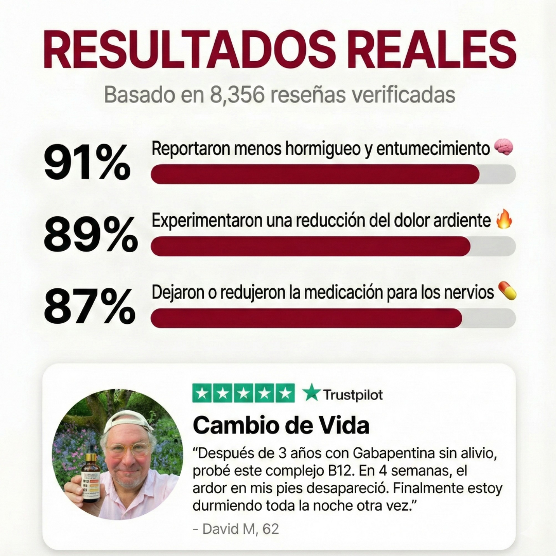 Muchos clientes reportan una reducción del hormigueo o el entumecimiento después de varias semanas de uso constante, especialmente cuando los síntomas están relacionados con niveles bajos de vitaminas del complejo B o con necesidades de apoyo nervioso.